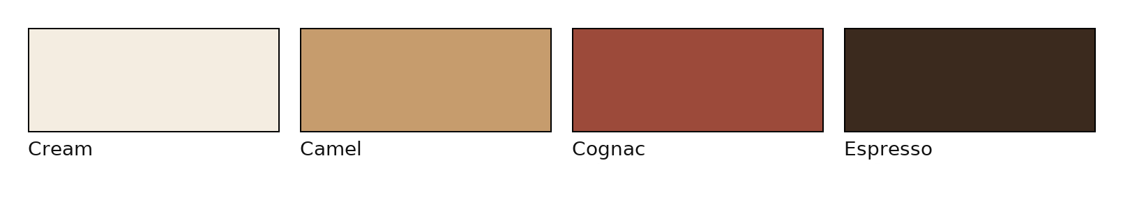 Cream and browns. One person in a cream cable knit and camel coat. Others in navy and grey with brown boots